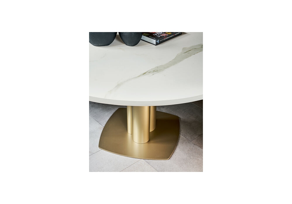 Tower diseñada por Riflessi es una mesa con base en metal pintado o revestido en madera y tapa en cerámica. Disponible en diferentes dimensiones.