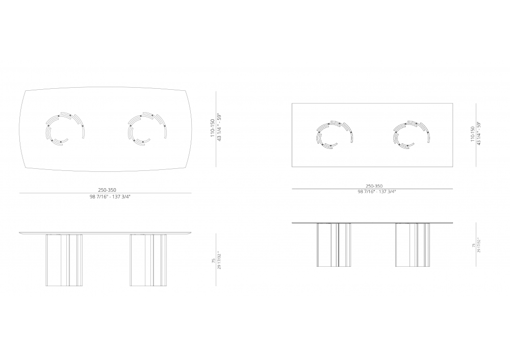 | Dimensiones | Ø140 x H 75 cm; Ø 160 x H 75 cm; 250 x 110 cm x H 75 cm; 250 x 110 x H 75 cm (rectangular); 350 x 110 x H 75 cm; 350 x 110 x H 75 (rectangular). |