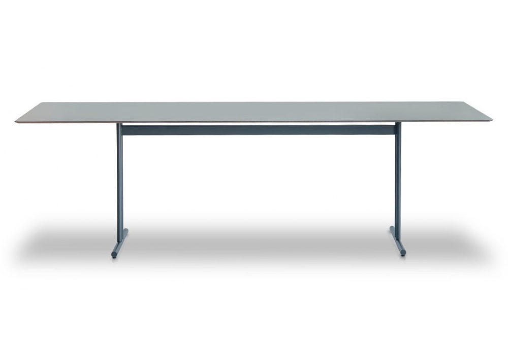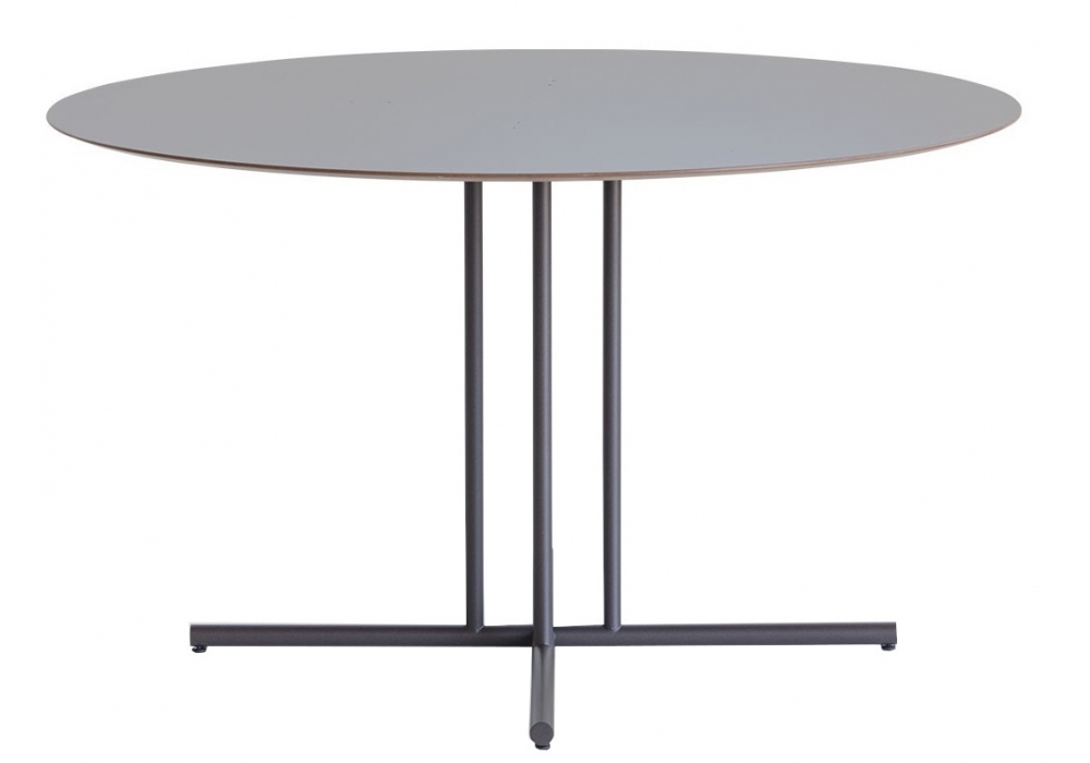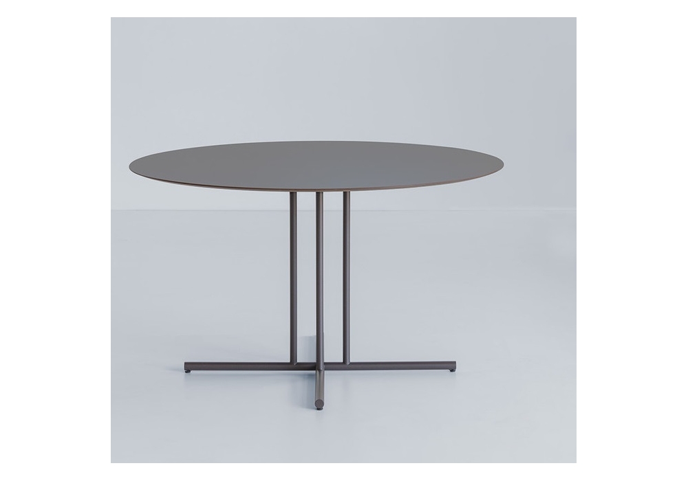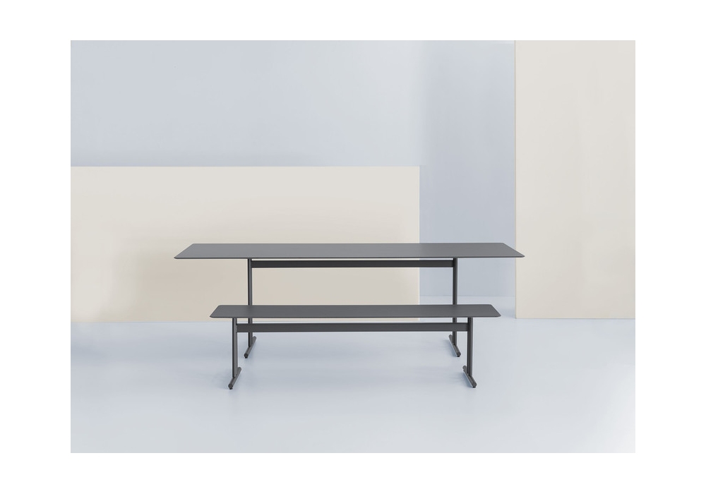 Graphic Outdoor diseñada por Victor Vasilev y Mario Ferrarini para Potocco es una mesa con base en metal pintado y tablero en HPL antracita. Bajo pedido se puede añadir una tapa exterior como accesorio.