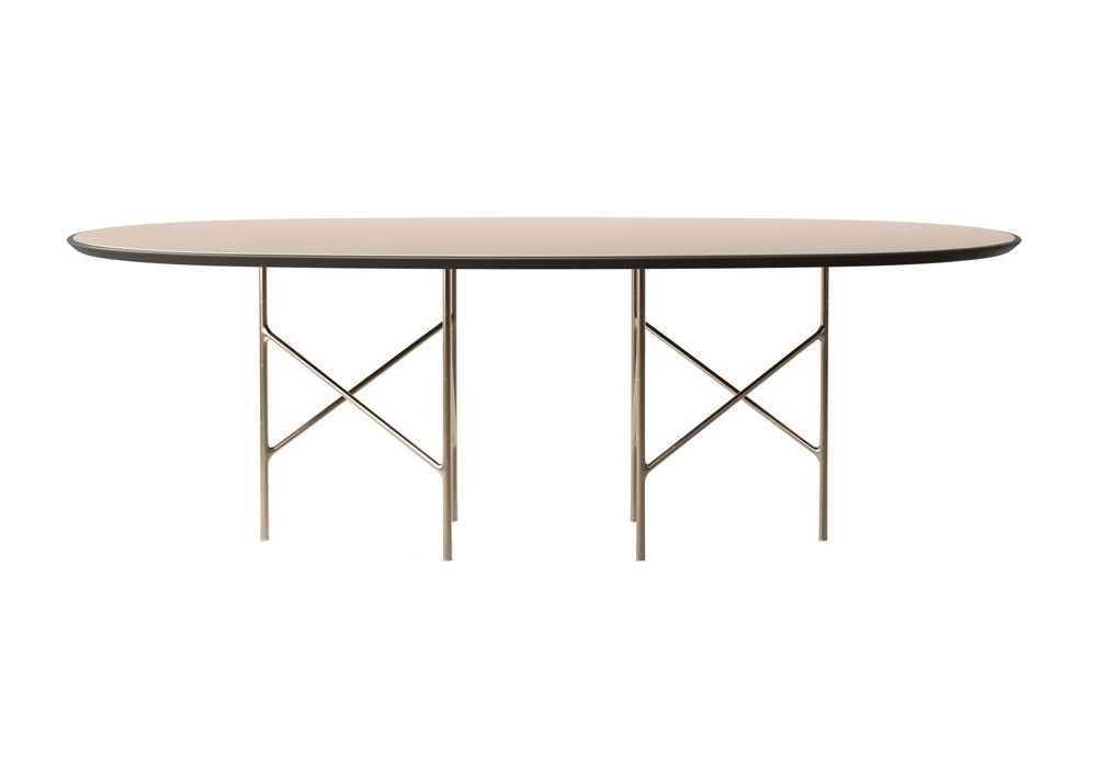 Alexander Oval diseñada por Marco Piva para Casamania & Horm es una mesa realizada con patas de metal fundido a presión que pueden ensamblarse de diferentes formas y compuesta por dos elementos más una junta en Y. Un cruce de unión como la Alexanderplatz de Berlín. Disponible en cuatro tamaños diferentes, incluso la tapa puede tener diferentes acabados desde el mármol hasta el metal, pasando por el cristal retropintado.