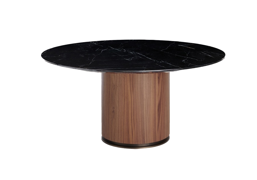 Otab diseñada por Gabriele y Oscar Buratti para Potocco es una mesa redonda con base en fresno o nogal Canaletto mate y tapa en diferentes acabados de mármol. Disponible con o sin tocadiscos Lazy Susan.
