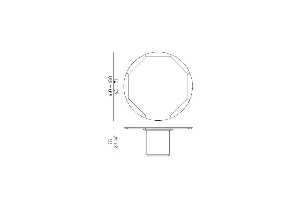 | Diámetro de la superficie | Ø 160 cm; Ø 180 cm. |
