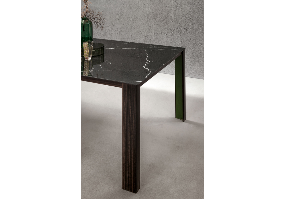 Atelier diseñada por Silvano Pierdonà para Capodopera es una mesa con patas de metal lacado mate recubiertas por dos lados con un revestimiento y un alma de metal que aumenta su rigidez. La tapa es de madera, gres o lacada.