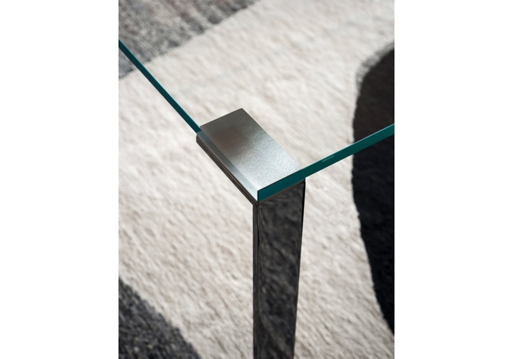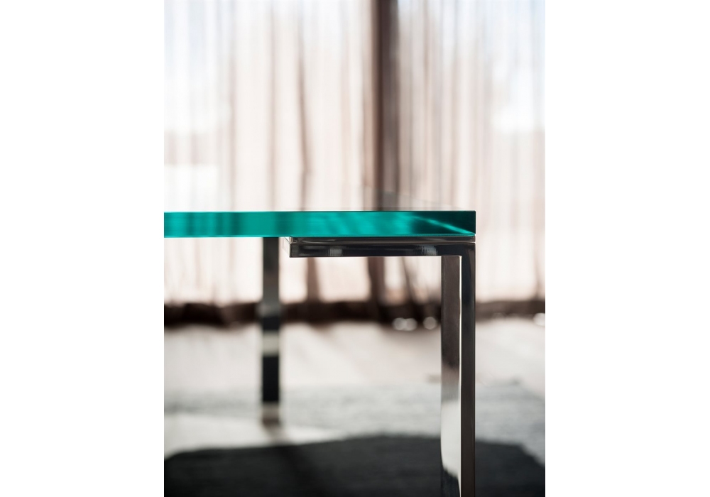 Liko Glass 404 diseñada por Arik Levy para Desalto es una mesa con patas de acero y tapa de cristal. Disponible en diferentes acabados y tamaños.