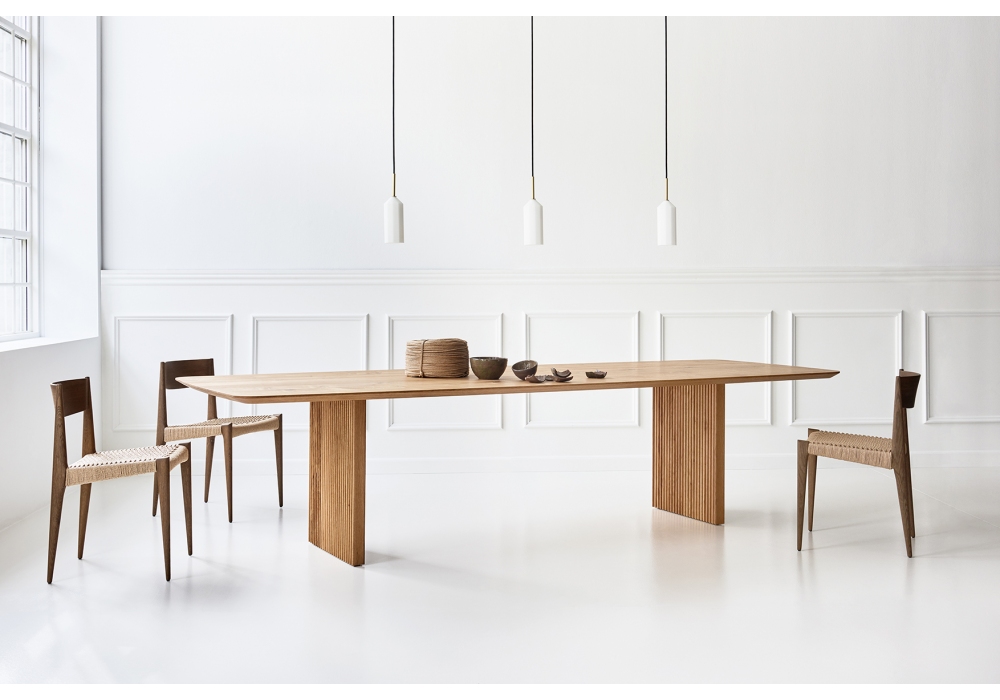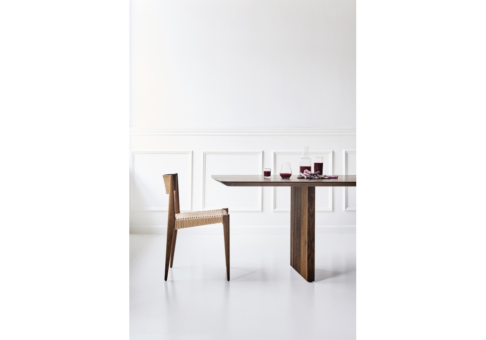 Ten diseñada por Christian Troels & Jacob Plejdrup para Dk3 es una mesa rectangular realizada en madera maciza, disponible en diferentes acabados y medidas, también está disponible la posibilidad de añadir extensiones.