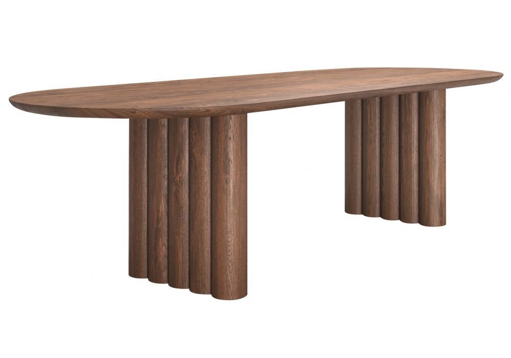 Plush diseñada por Jacob Plejdrup para Dk3 es una mesa ovalada realizada en madera maciza disponible en diferentes acabados y medidas, también está disponible la adición de extensiones.