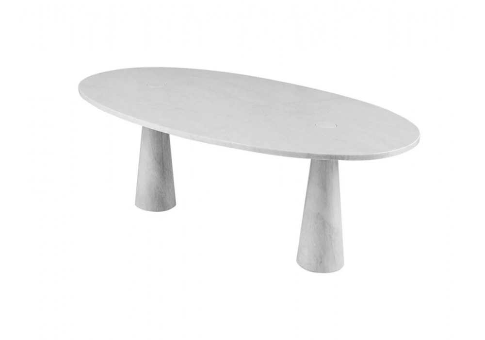 Eros diseñada por Angelo Mangiarotti para Agapecasa es una mesa realizada en mármol en diferentes acabados. Se caracteriza por uno o más soportes cónicos incrustados en el tablero según la forma. Disponible en diferentes modelos.