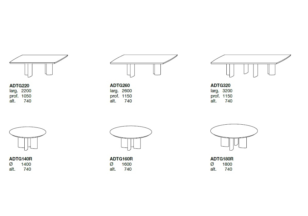 | Dimensiones | 220 x 105 x H 74 cm; 260 x 115 x H 74 cm; 320 x 115 x H 74 cm; Ø 140 x H 74 cm; Ø 160 x H 74 cm; Ø 180 x H 74 cm. |