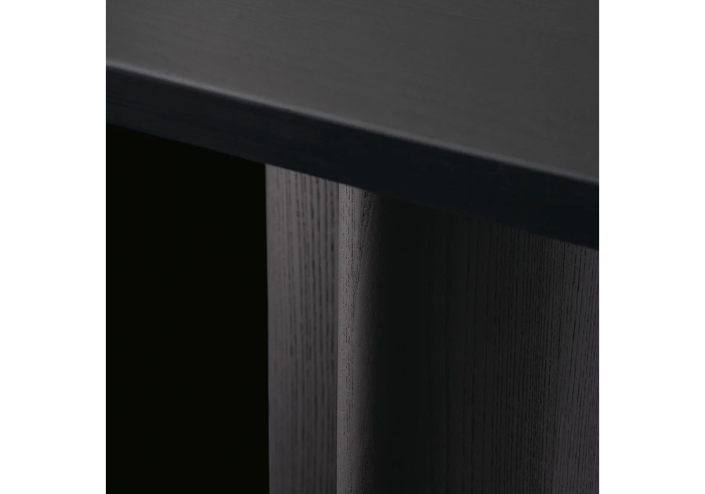 Adrien diseñada por Jean Marie Massaud para Poliform es una mesa con estructura en madera maciza de olmo teñido negro, metal lacado brillante, metal pintado mate y brillante light sheer o dark sheer. Tablero en olmo negro o lacado brillante. Disponible en diferentes medidas.
