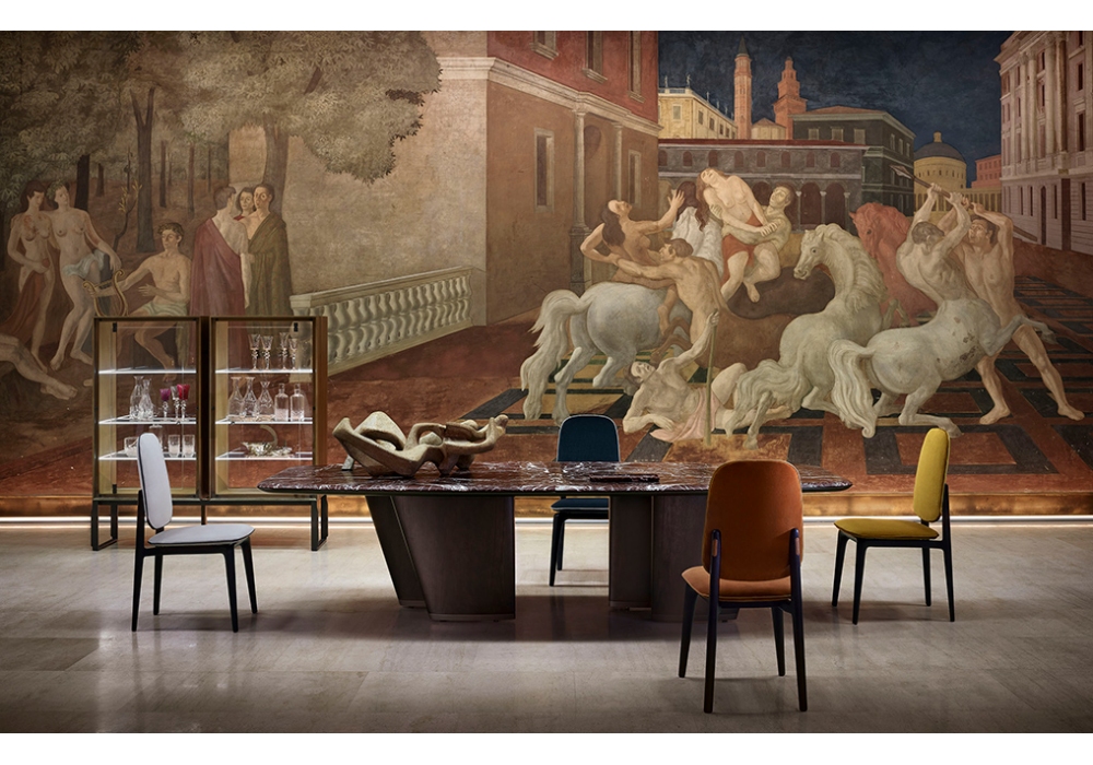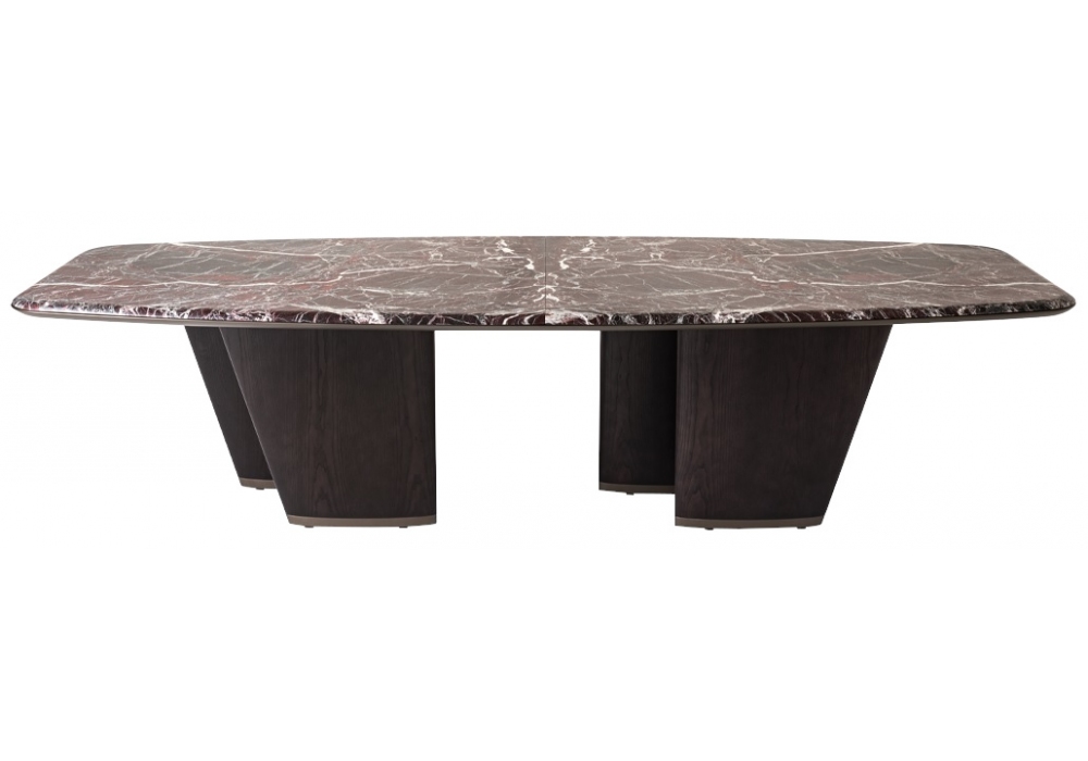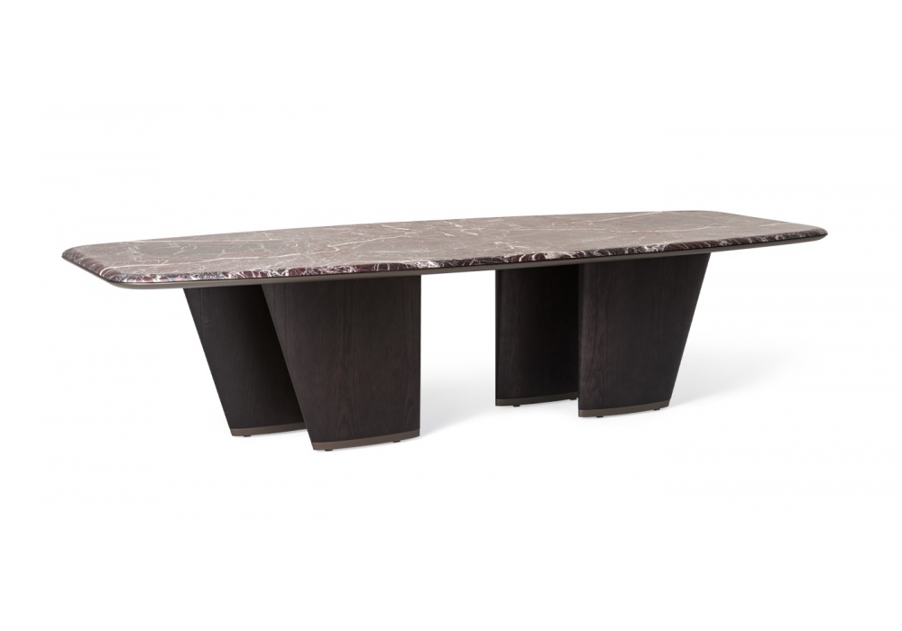 Mistral Marble diseñada por Dainelli Studio para Giorgetti es una mesa rectangular con tapa de mármol y estructura de fresno. Disponible en diferentes acabados, tamaños y versiones.
