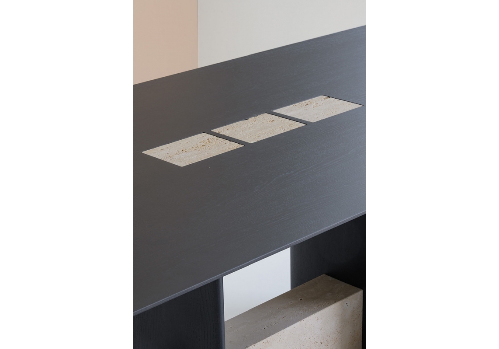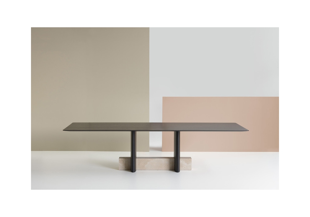 Syn Quadrangular diseñada por Mario Ferrarini para Potocco es una mesa con base estructurada por la combinación de madera y mármol o piedra. La tapa es de mármol, piedra o madera con forma cuadrangular. Syn está disponible en diferentes acabados y tamaños.