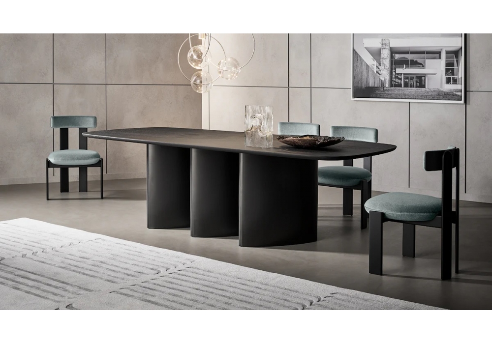 Louver diseñada por Alain Gilles para Bonaldo es una mesa con tapa de madera, cerámica o mármol, base de metal pintado mate o revestida de madera. Disponible en diferentes acabados y tamaños.