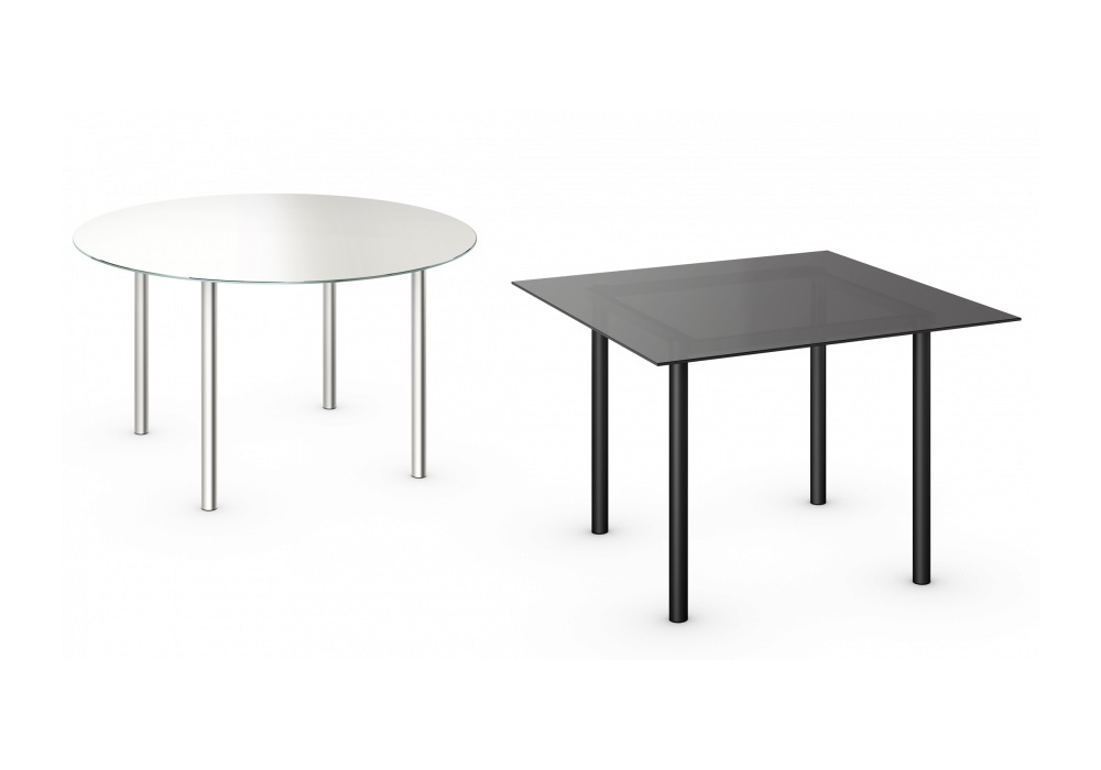 TA25 Theorem diseñada por Philipp Mainzer & Farah Ebrahimi para E15 es una mesa con estructura de acero y tapa de cristal. Disponible en diferentes acabados y tamaños.
