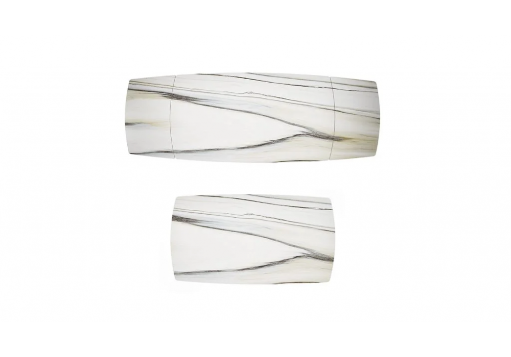 Archimede 72 diseñada por Riccardo Lucatello para Reflex Angelo es una mesa extensible realizada con estructura y placa de metal, patas revestidas en cuero y tapa en Marmoreflex/Legnoreflex. Disponible en diferentes acabados y dimensiones.