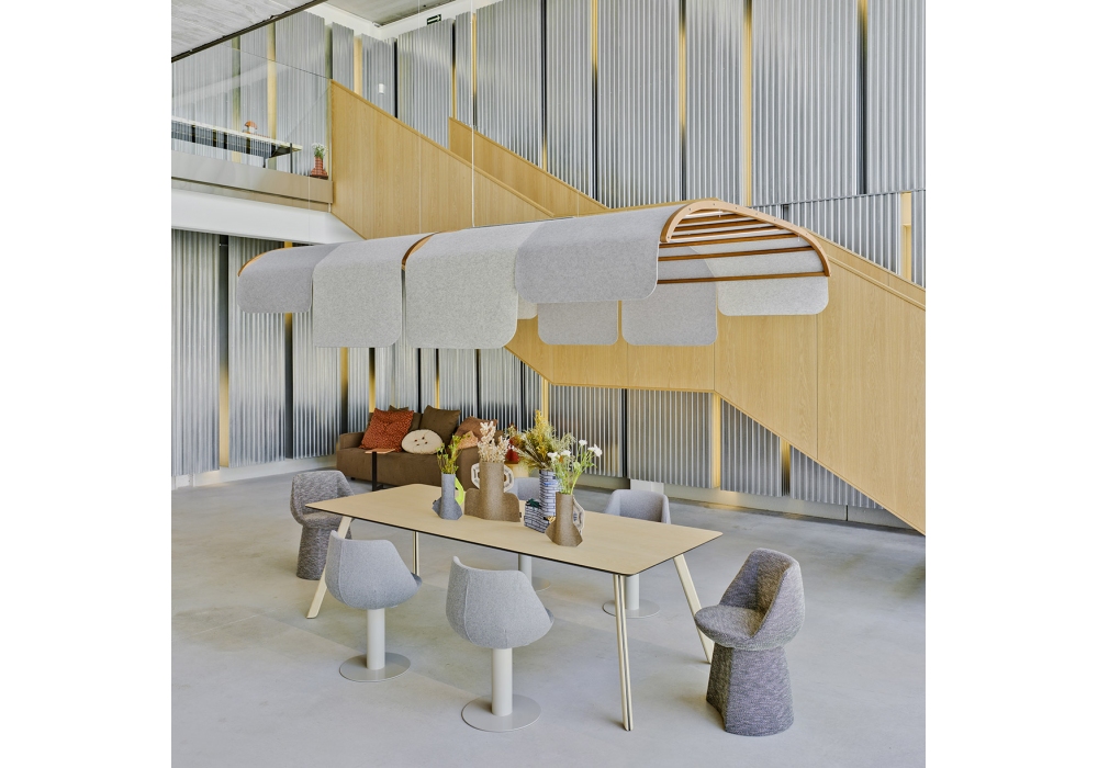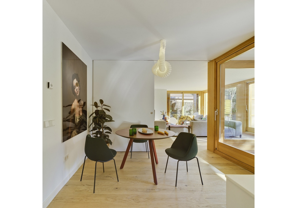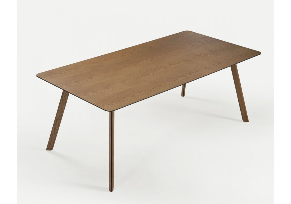 Tortuga diseñada por Isaac Piñeiro para Sancal es una mesa con tapa de MDF chapada en fresno con canto y fondo lacados en negro. Patas en acero lacado negro y madera de fresno. Disponible en diferentes acabados y tamaños.