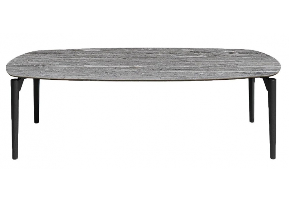 Tavolo '95 Oval diseñada por Achille Castiglioni para DePadova es una mesa ovalada con patas en madera maciza de fresno teñida color carbón. Estructura de acero y soportes de aluminio fundido a presión, con recubrimiento en polvo negro mate. Pies regulables en material termoplástico. Disponible con tapa de madera o mármol en diferentes acabados y medidas.