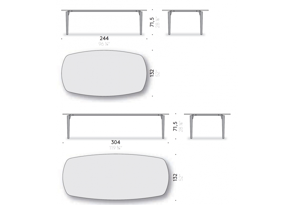 | Dimensiones | 244 x 132 x H 71,5 cm; 304 x 132 x H 71,5 cm. |
