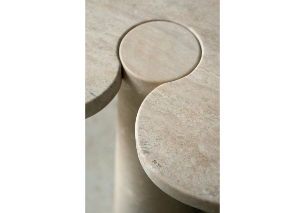 Eros diseñada por Angelo Mangiarotti para Agapecasa es una mesa redonda con una pata realizada en mármol en diferentes acabados. Provista de placa de seguridad para fijación al suelo.