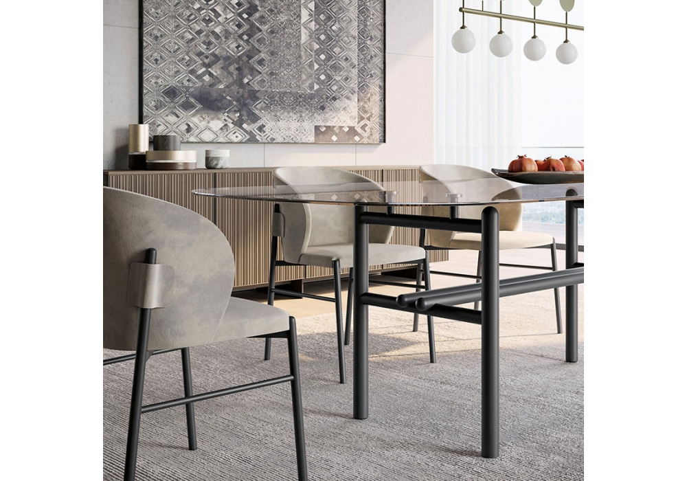Supernova diseñada por Signorotto+Partners para Dall'Agnese es una mesa realizada con tablero fijo ovalado disponible en cristal transparente, bronce transparente o gris transparente o en cristal lacado y base de metal. Disponible en diferentes acabados y dimensiones.