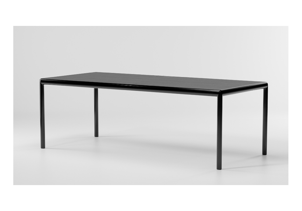 Passage diseñada por Ronan Bouroullec para Kettal es una mesa con estructura de metal con acabado brillante o texturizado. El tablero es de chapa de roble.