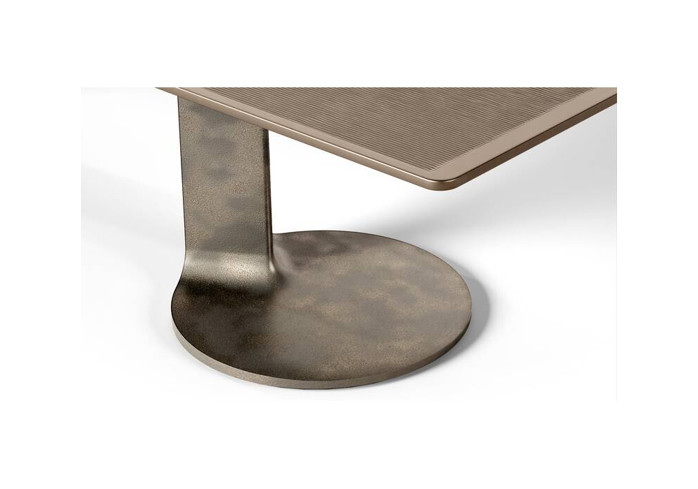 TL59 diseñada por Afra & Tobia Scarpa para Cassina es una mesa rectangular realizada con doble base y tablero con aplicación de metal.