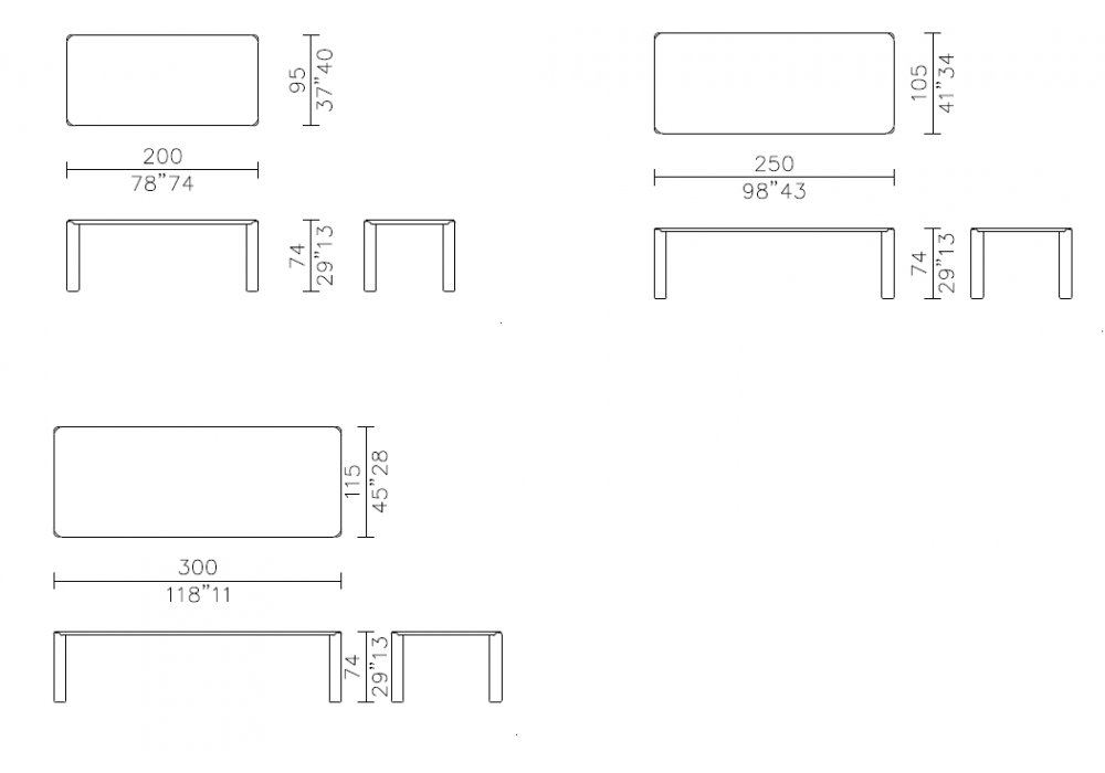 | Dimensiones | 200 x 95 x H 74 cm; 250 x 105 x H 74 cm; 300 x 115 x H 74 cm. |