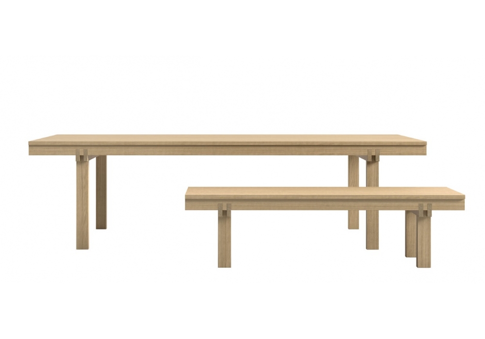 Mathare diseñada por Hsiang Han Hsu para Cappellini es una mesa fabricada con paneles de conglomerado de madera de densidad media chapados en roble. Base y laterales bajo el tablero de roble macizo.