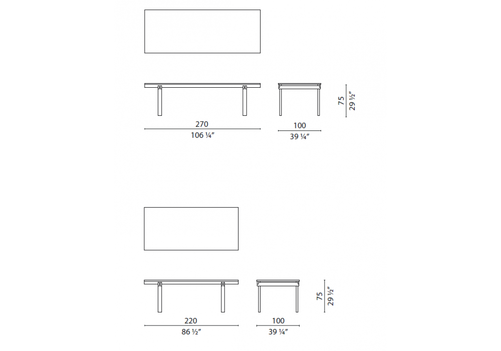 | Dimensiones | 270 x 100 x H 75 cm; 220 x 100 x H 75 cm. |