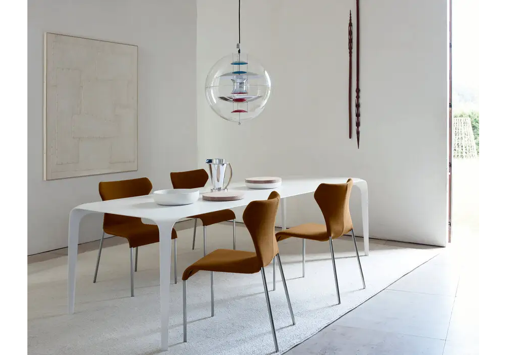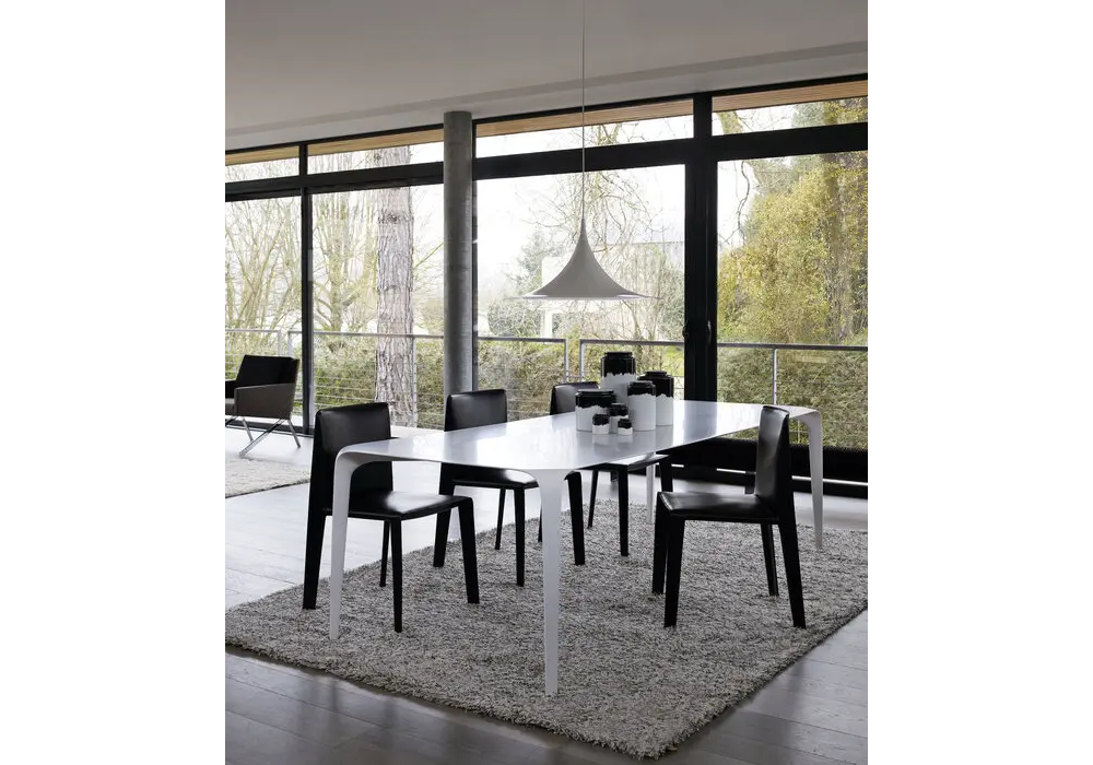 Link diseñada por Jakob Wagner para B&B italia es una mesa realizada con tablero y patas en Cristalplant Outdoor® blanco. Disponible en dos dimensiones.