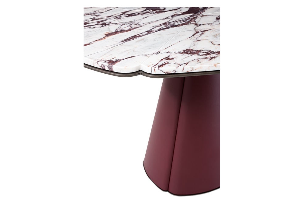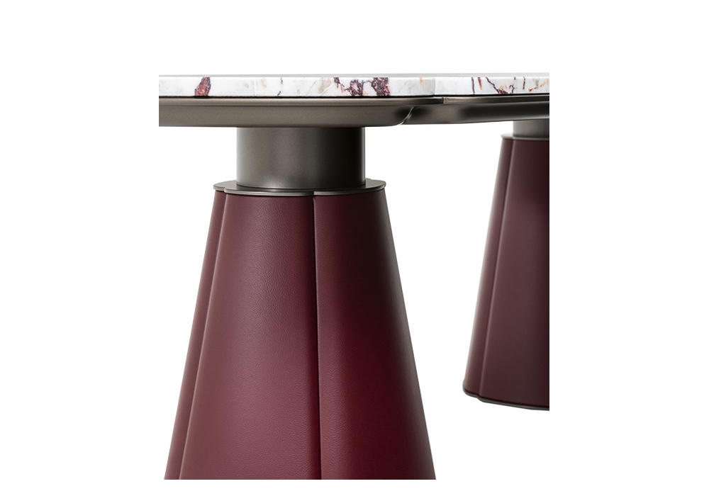 Floria diseñada por Pierre-Yves Rochon para Giorgetti es una mesa con tablero de mármol, disponible en diferentes acabados y patas en piel. Floria presenta grabados en el tablero y fresados en las esquinas que evocan la forma de una flor. Disponible en diferentes medidas.
