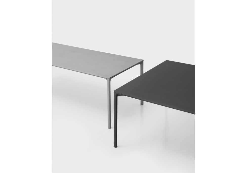 Boiacca diseñada por LucidiPevere para Kristalia es una mesa con estructura de aluminio y patas y tapa de hormigón. Está disponible en diferentes tamaños.