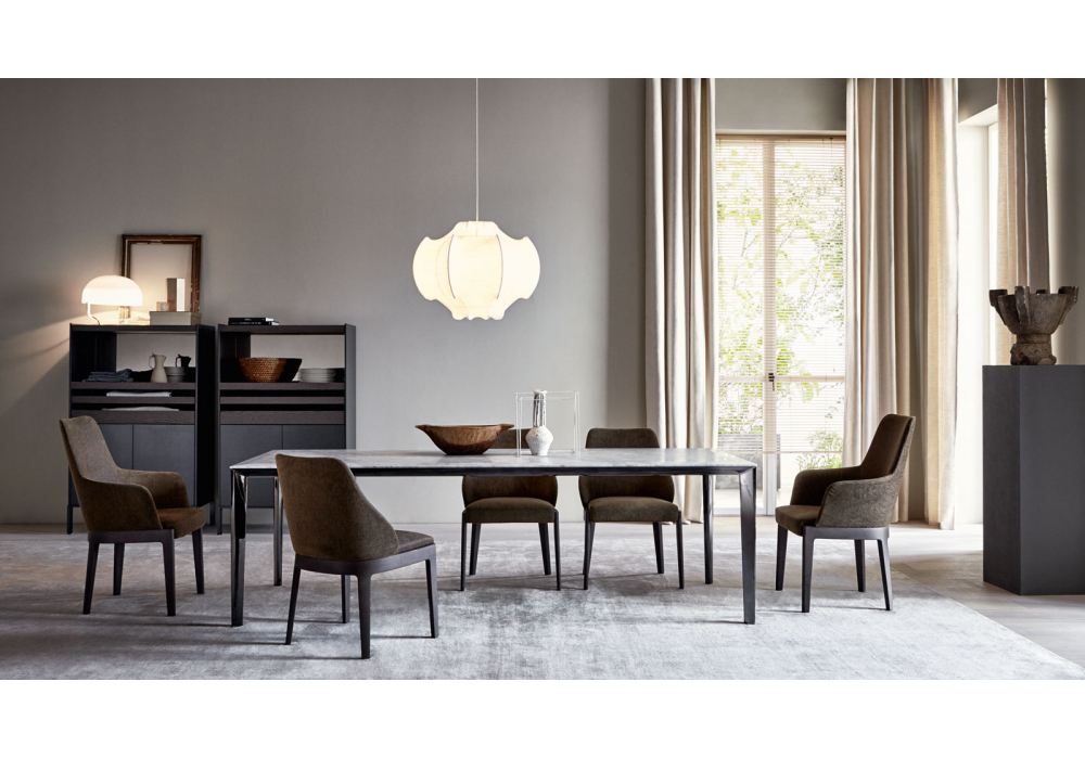Filigree diseñada por Rodolfo Dordoni para Molteni&C es una mesa rectangular fija realizada con estructura de metal o madera y tapa de vidrio, madera o mármol. Disponible en diferentes acabados y dimensiones.