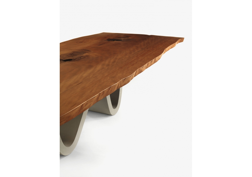 Kauri Bree e Onda diseñada por Passon & Savorgnani para Riva 1920 es una mesa realizada con un tablero sólido Kauri, combinado con una particular pata con una forma sinuosa que recuerda las olas del mar.