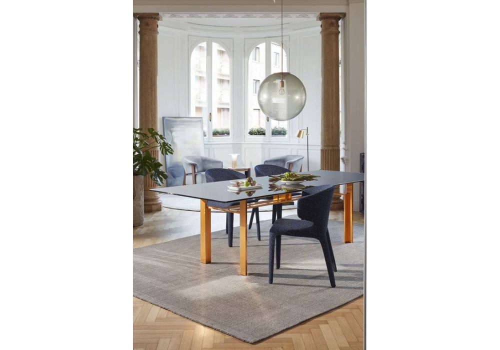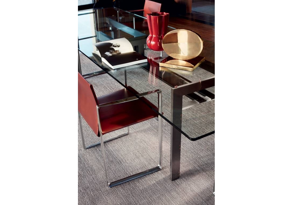 Doge diseñada por Carlo Scarpa para Cassina es una mesa realizada con una base de acero o aluminio y un tablero de cristal o mármol. Disponible en diferentes acabados y dimensiones.