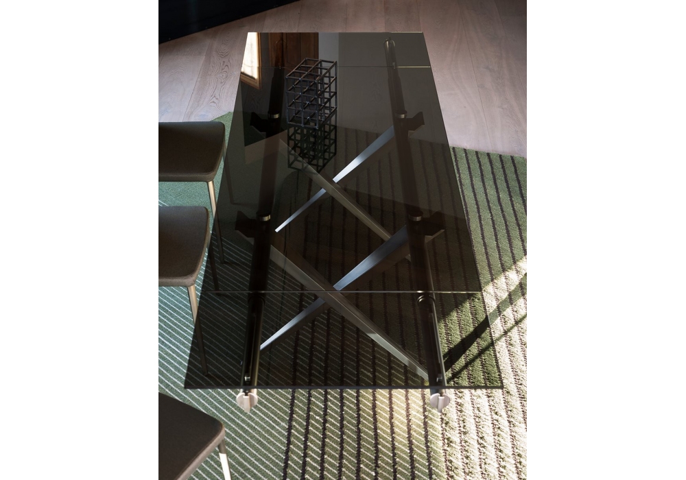 Tender 420 diseñada por Decoma para Desalto es una mesa extensible con patas de aluminio inyectado y tubos de acero. Disponible en diferentes acabados y tamaños.