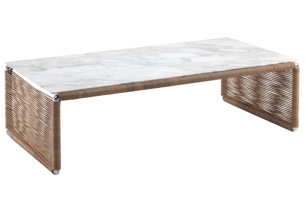 Tindari diseñada por Antonio Citterio para Flexform es una mesa de centro con estructura de tubo metálico de sección circular con tapa en tejido de cuero, madera maciza o mármol.