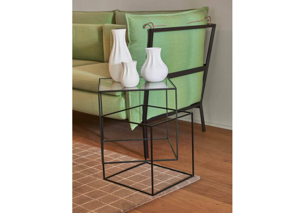 Thin Black Table diseñada por Nendo para Cappellini es una mesita realizada con estructura de metal pintado negro mate y superficie de cristal extralight.
