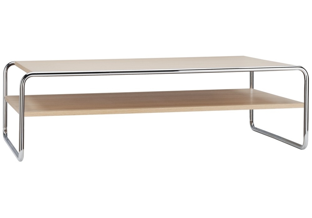 B 20 diseñada por Thonet es una mesa de centro con estructura en tubo de acero cromado o pintado en diferentes colores. Tapa de MDF en diferentes acabados. La mesa de centro también está disponible en dos tamaños y con o sin estante adicional.