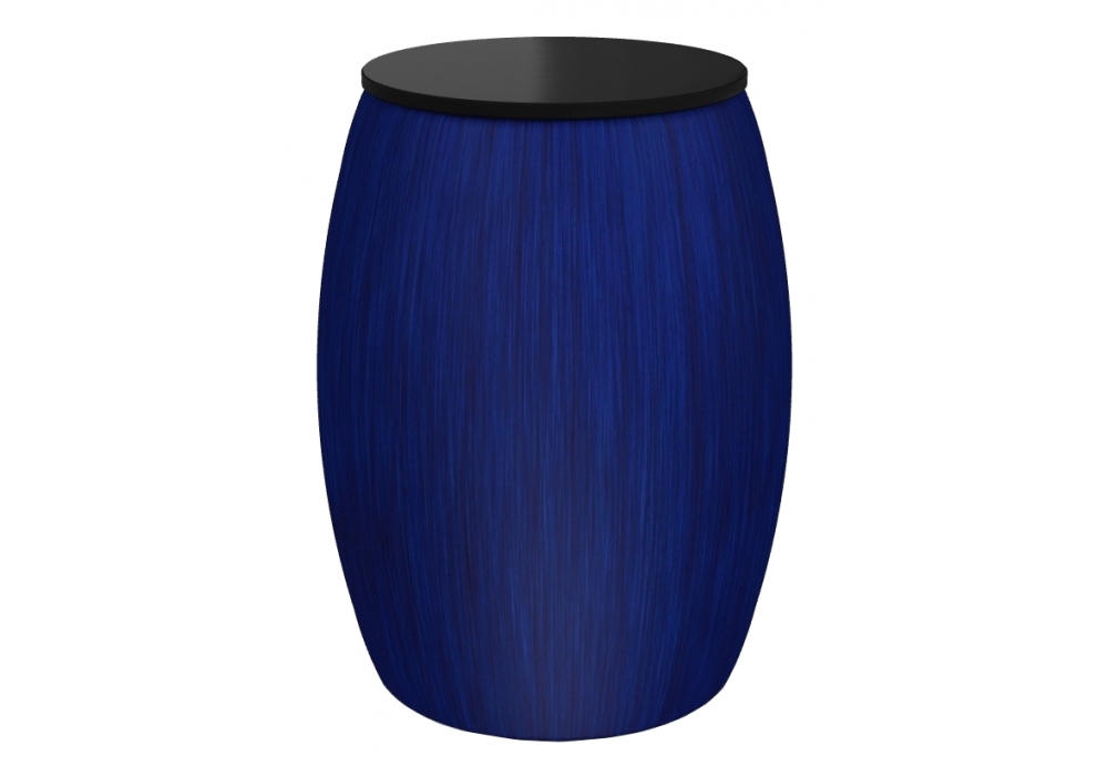 News 108 diseñada por Paola Navone para Gervasoni es una mesita & puf realizada en hojas de periódico prensadas y pintadas de azul y tablero en MDF lacado negro brillante.