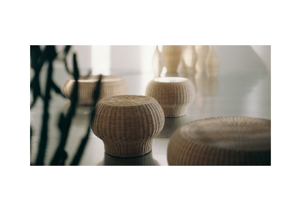 Bolla 10 diseñada por Michael Sodeau para Gervasoni es una mesita/taburete realizada en mimbre melange natural o mimbre lacado en diferentes acabados.