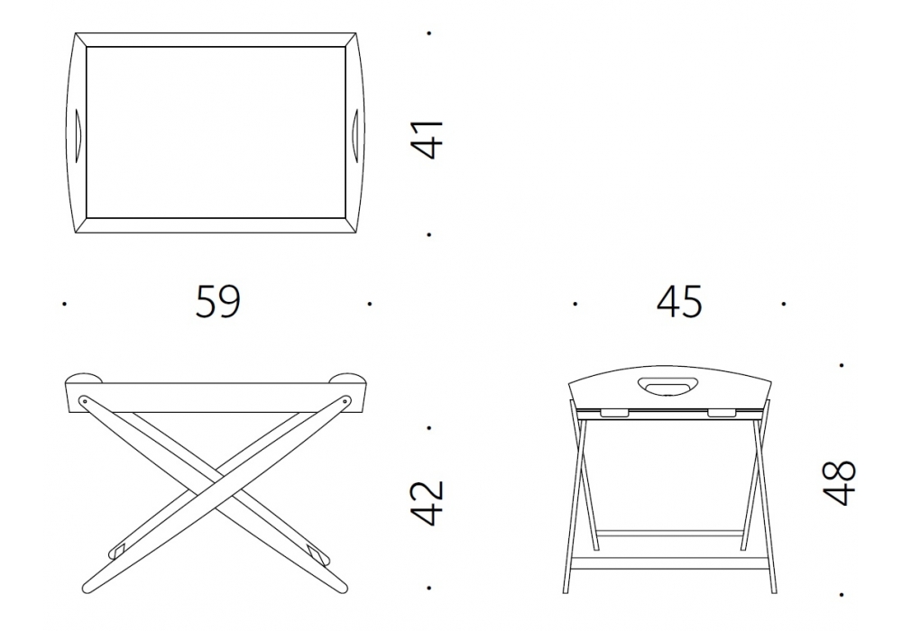 Mate diseñada por Achille Castiglioni para DePadova es una mesita con base plegable y estructura en haya natural maciza o fresno carbón macizo y correas de algodón azul. Tapa de contrachapado de abedul.