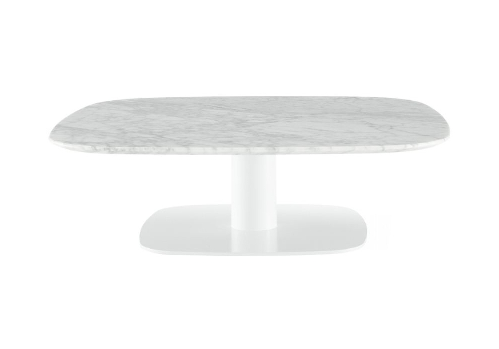 Alster diseñada por Emmanuel Dietrich para Ligne Roset es una mesita con superficie en mármol de Carrara blanco veteado gris claro de 20 mm de espesor con borde biselado. Pedestal central en acero lacado epoxi blanco. También disponible con superficie en nogal europeo macizo barnizado mate de 40 mm de espesor con cantos biselados y pedestal central en acero lacado negro.