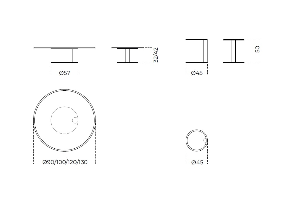 | Diámetro de la superficie | 45 / 90 / 100 / 120 / 130 cm |