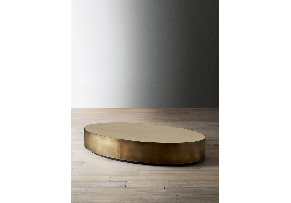 Belt designed by Andrea Parisio for Meridiani is a low table with base in matt lacquer lava finish and wooden frame with bronzed brass or platinum steel side panels. Top available in matt or glossy lacquer, marble, glass, mirror or wood veneer. Belt is made of different sizes and shapes.