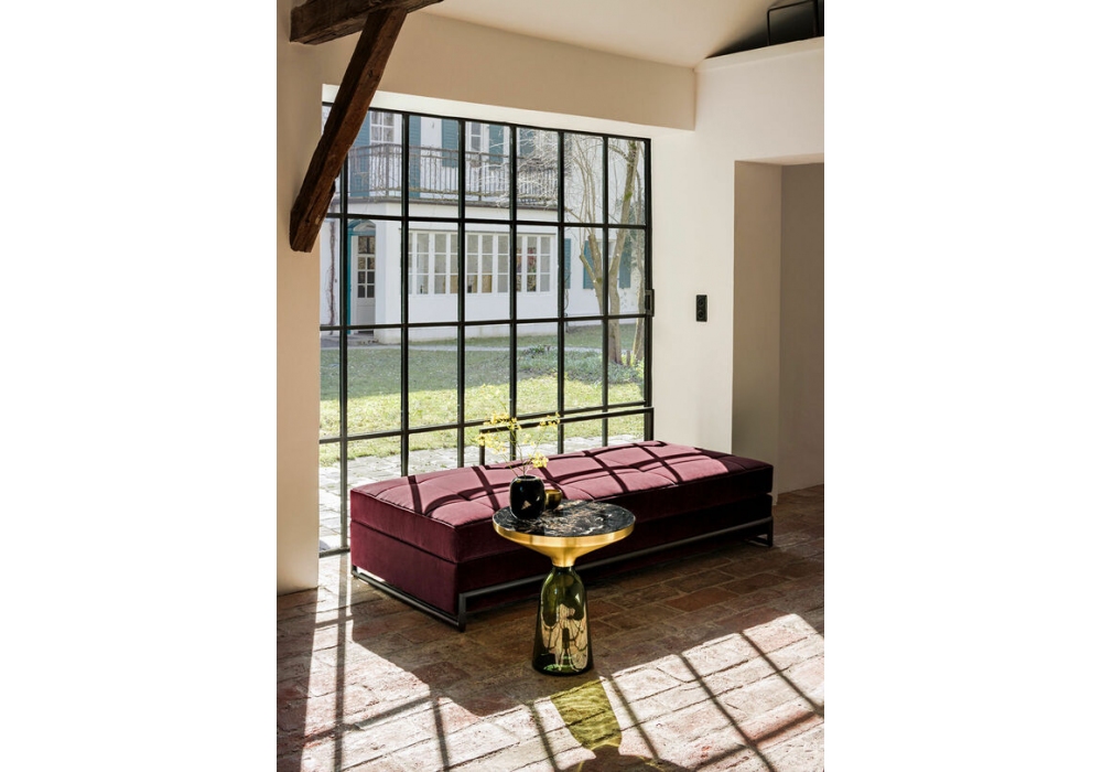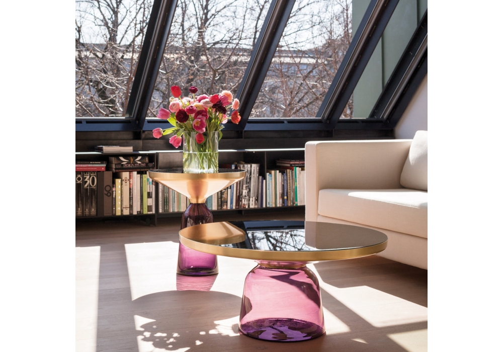 Bell diseñada por Sebastian Herkner para ClassiCon es una hermosa mesa auxiliar con base de vidrio soplado disponible en varios colores. La estructura que soporta el tablero de la mesa es de metal. Tapa redonda en cristal lacado negro o en mármol. Disponible en diferentes acabados.