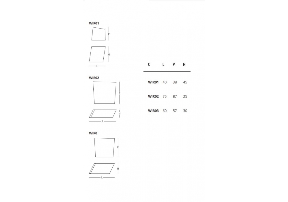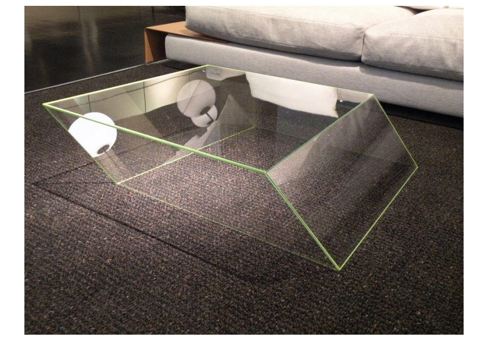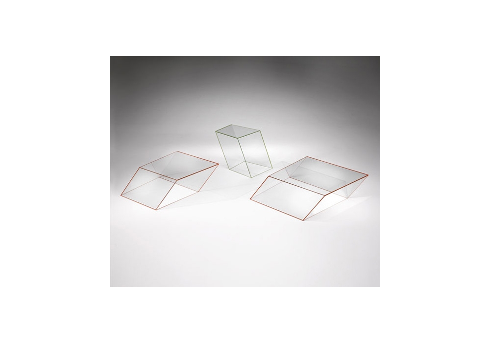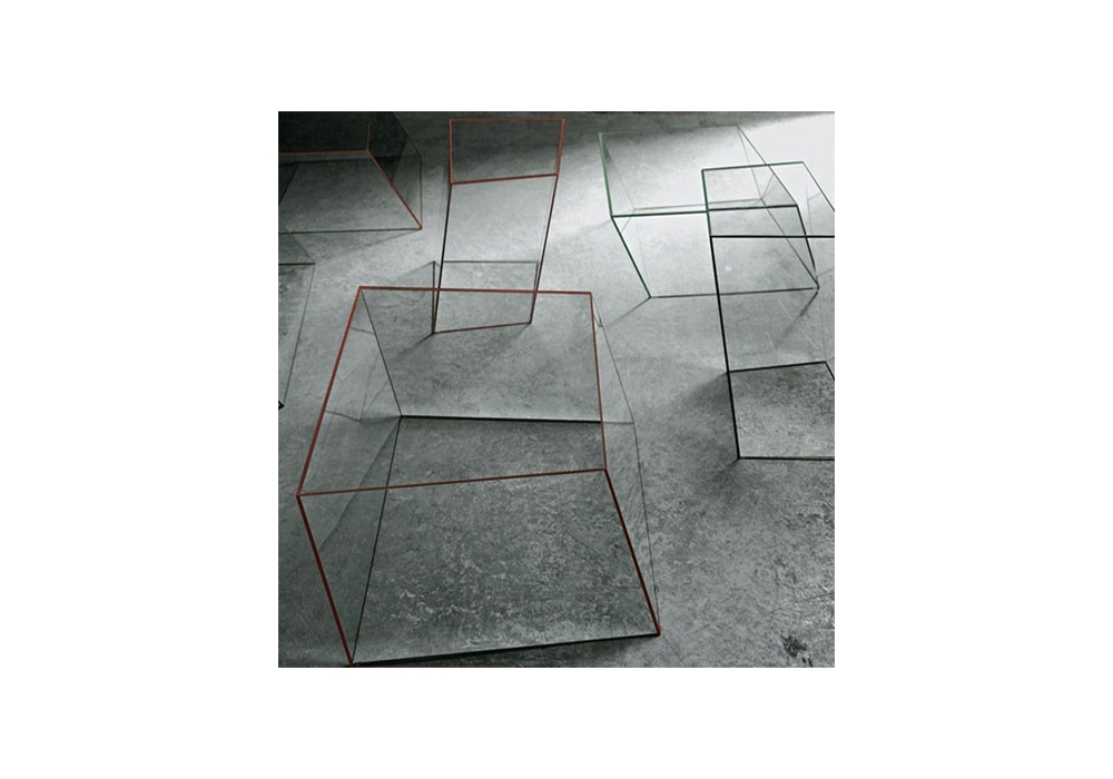 Wireframe diseñada por Piero Lissoni para Glas Italia es una mesita en forma de paralelepípedo irregular, realizada mediante el encolado de láminas de vidrio transparente templado extraligero, cuyos cantos presentan ángulos de rectificado con diferentes inclinaciones. Los bordes están resaltados por una línea de color en diferentes acabados.