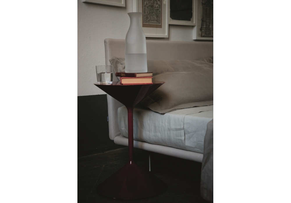 631 Tempo diseñado por Prospero Rasulo para Zanotta es una mesita con estructura de poliuretano rígido y asta central de acero. Lacado en color blanco, negro o rojo.