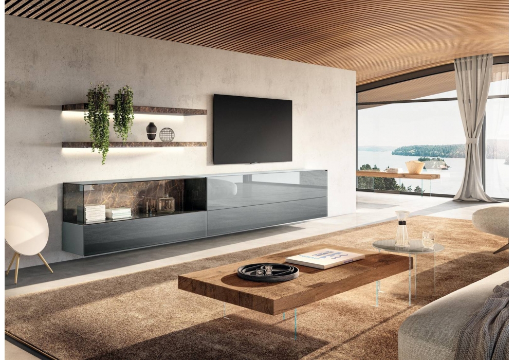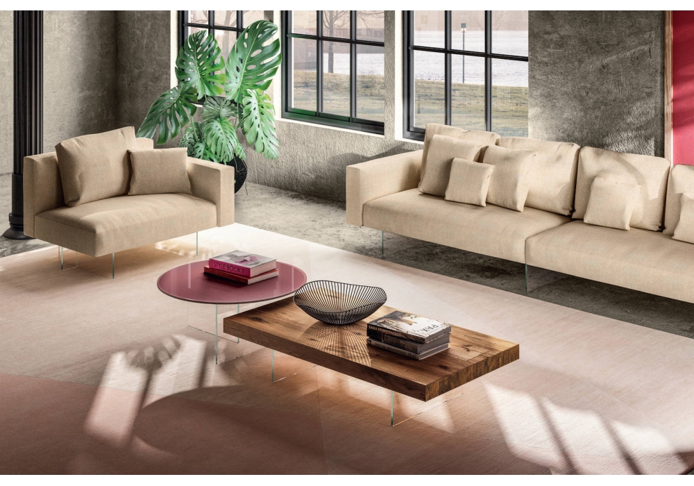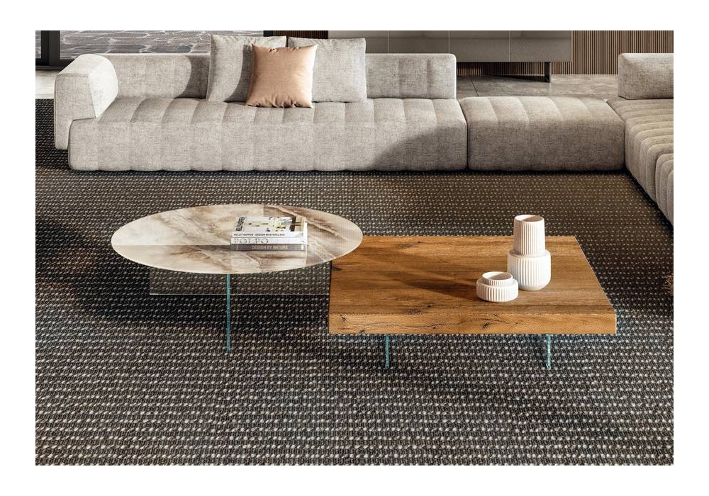 Air Wildwood diseñada por Daniele Lago para Lago es una mesita realizada con patas de cristal extraclaro o gris ahumado y tablero de Wildwood. Disponible en diferentes acabados y dimensiones.