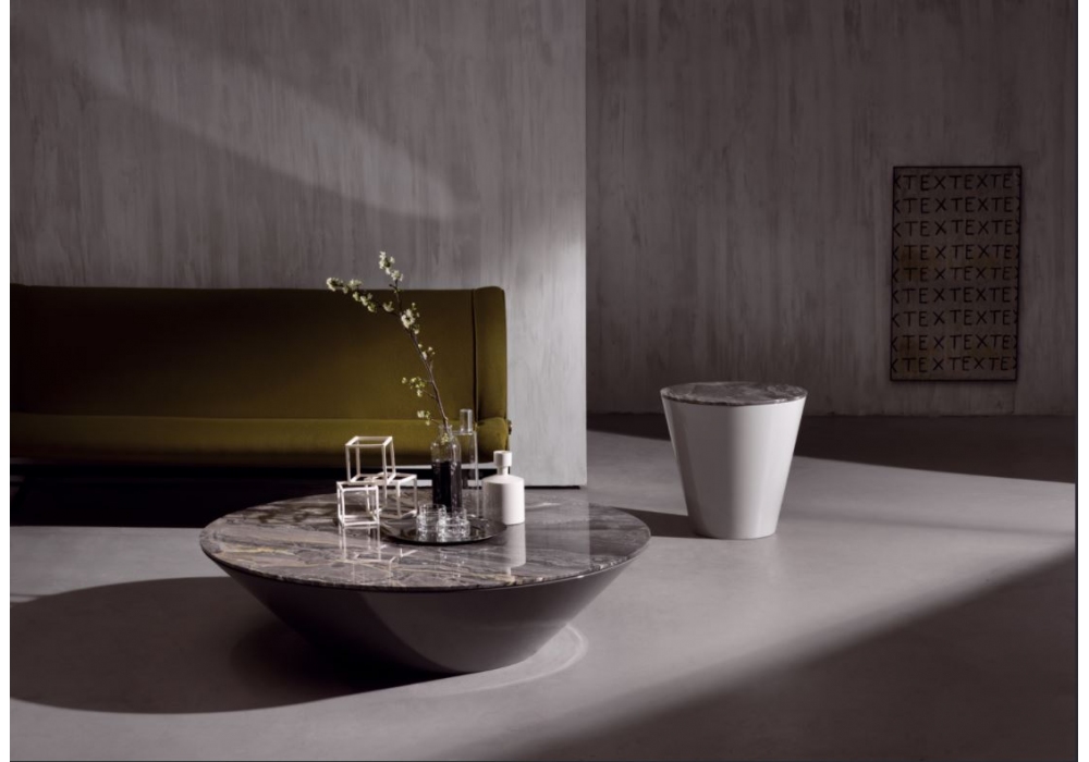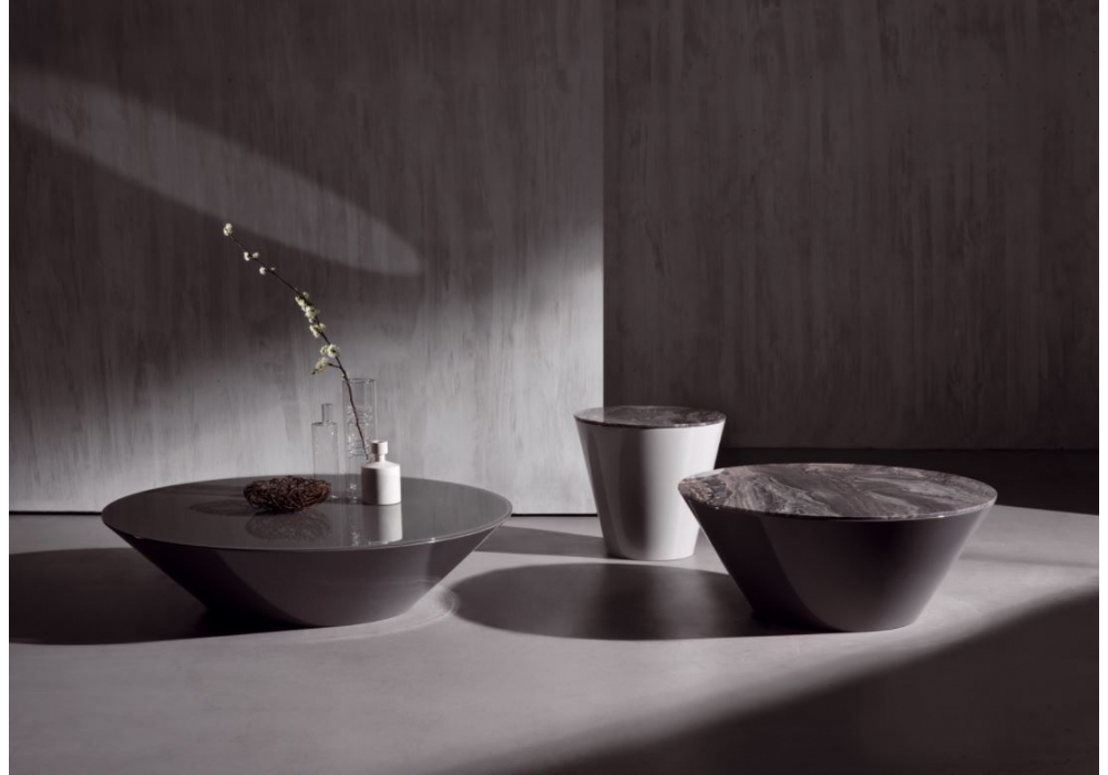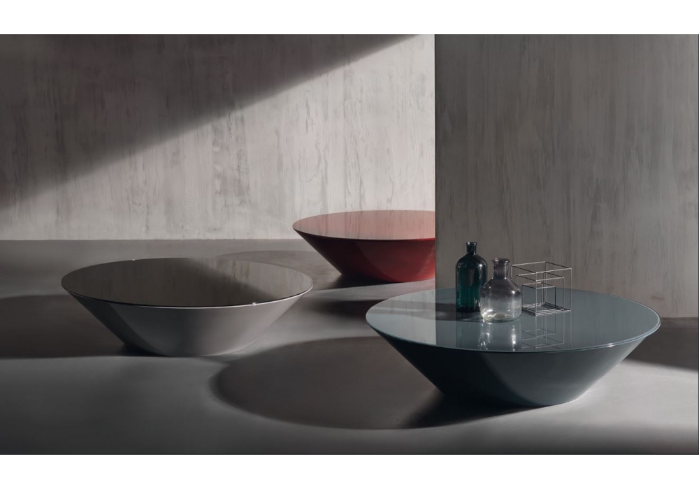 Pond diseñada por Marco Acerbis para Acerbis es una hermosa mesita en varias medidas y alturas. Base en poliuretano moldeado BAYDUR®60, lacada con acabados brillantes. Tablero en vidrio lacado o piedra. Mientras el volumen cónico de la estructura tiende casi a desaparecer, el tablero suspendido sobre el suelo vive de intrigantes reflejos y matices. Las mesitas con tablero de cristal, cuya superficie refleja todo lo que las rodea, recrean el efecto místico de un estanque de agua. Los tableros de piedra, por su parte, viven de la riqueza de su veteado y del mosaico de minerales de que están compuestos.
