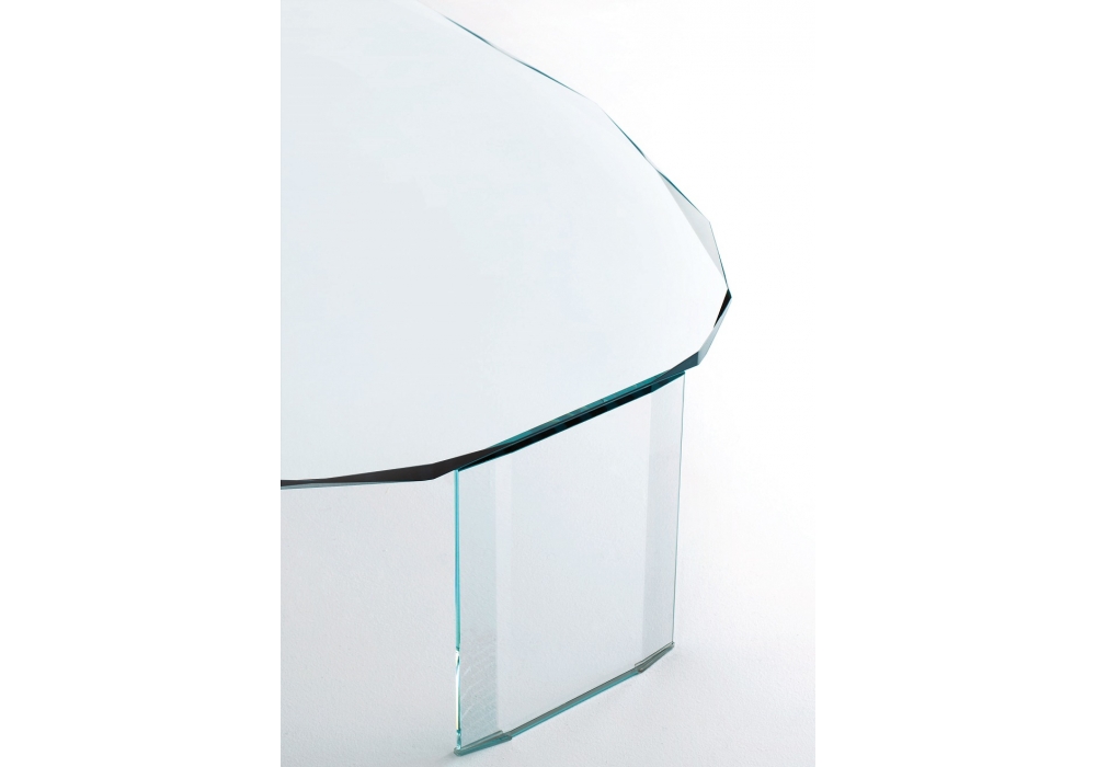 Kooh-I-Noor diseñada por Piero Lissoni para Glas Italia es una hermosa mesita baja con forma de ovaloide, realizada en cristal transparente extralight de 15 mm. El tablero y las patas muestran cortes faceteados, obtenidos gracias a especiales biselados del cristal.